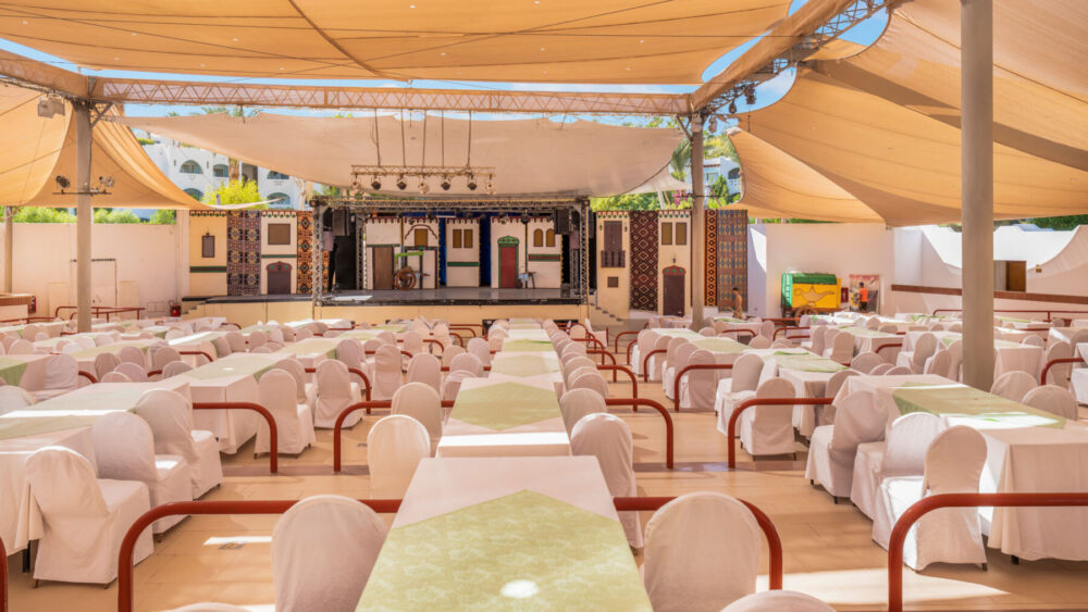 تعتبر العروض المسائية هي الفخر الحقيقي للترفيه لدومينا كورال باي والمصممة عن طريق فريق عالمي من المحترفين الحصريين لمنتجعنا. وقد تم دراسة الأزياء والموسيقى والديكور المنفذ وتصاميم الراقصات بعناية فائقة منصبة على أدق التفاصيل وذلك لنقدم إلى نزلائنا منتجًا على أعلى مستوى.