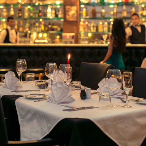 ففي الداخل، يقدم مطعم كازينو علاء الدين وباراته أفضل الأطعمة الإيطالية ومجموعة كبيرة من المشروبات العالمية.