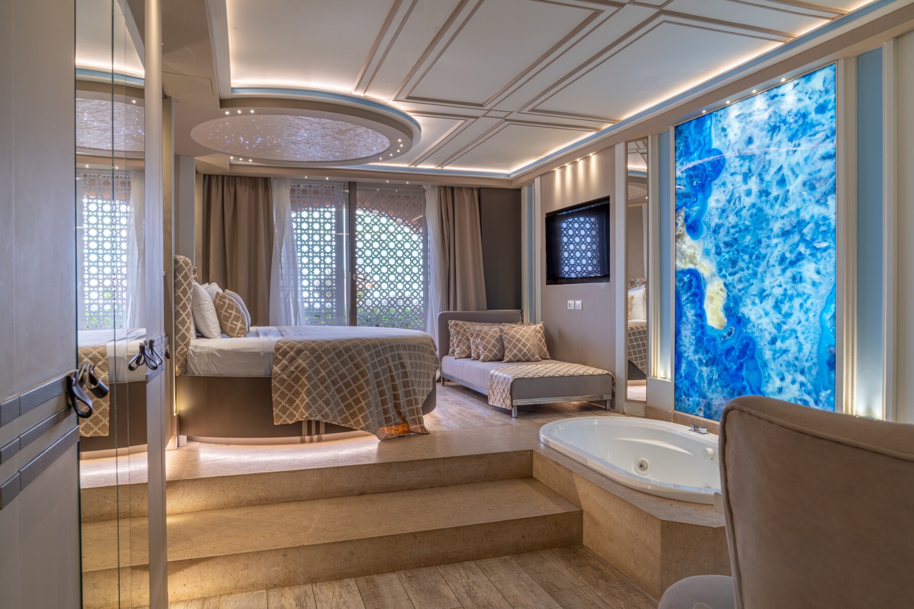 A dreamlike atmosphere, an open-view Jacuzzi, and a welcoming bed crowned by a starry vault make Mirabile the perfect love nest for the couple’s getaway you have always dreamed of.
