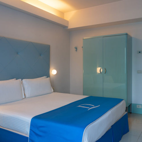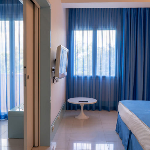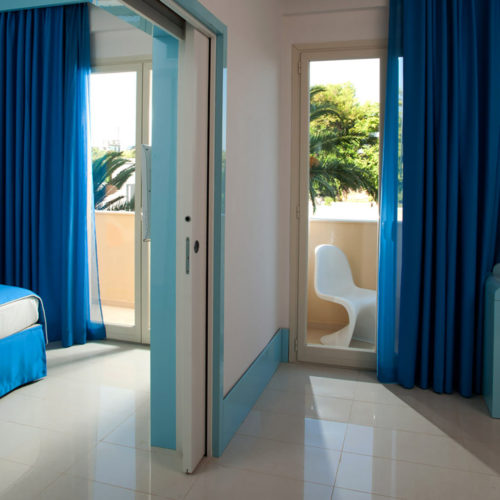 Large duplex room with an inner view for a pleasant vacation with more privacy, ideal solution for families with children. Consists of a bedroom with living room and one or two bathrooms.