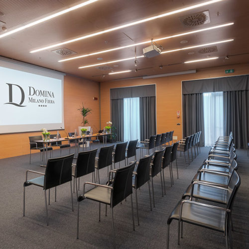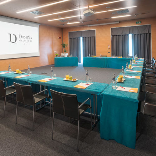 E’ una sala meeting ideale per ospitare, oltre alla classiche riunioni, anche corsi di formazione ed corsi ECM. Adiacente alla sala c’e’ un desk accoglienza visibile dall’ingresso dell’hotel.