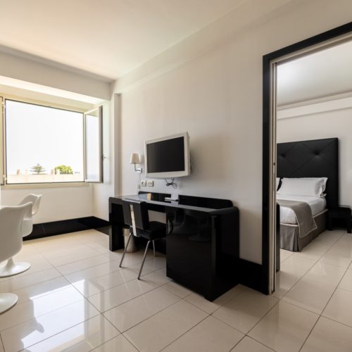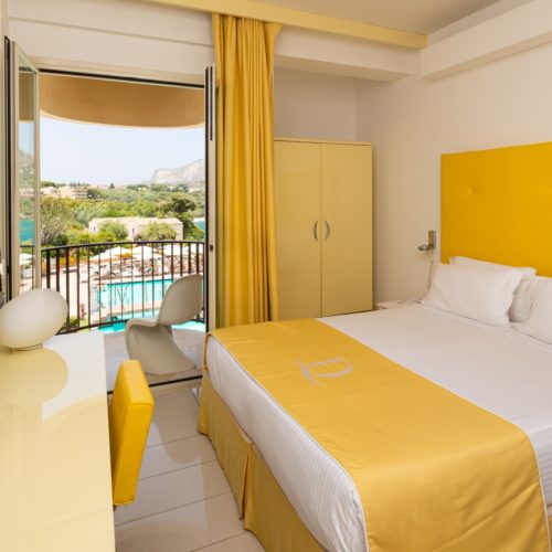 Una camera di prestigio, ampia e luminosa, con una vista mare mozzafiato che ben si armonizza con il design allegro…