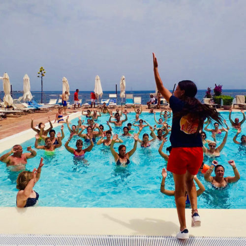Занятия в бассейне идеально подходят для того, чтобы освежиться в жаркие дни, а наша команда аниматоров поможет Вам улучшить свои навыки в аквааэробике.